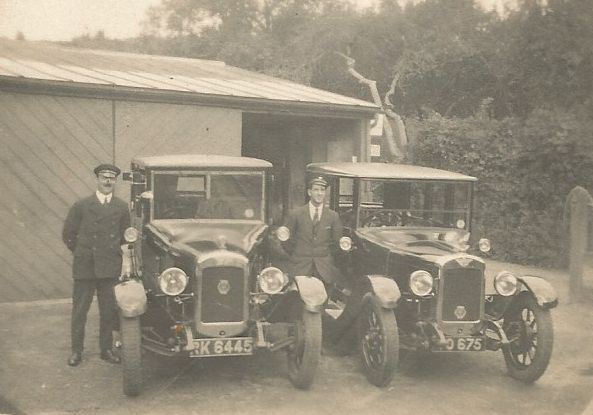 Chauffeurs Jack MiZen left and Jack Fisk right at garage, unknown date.